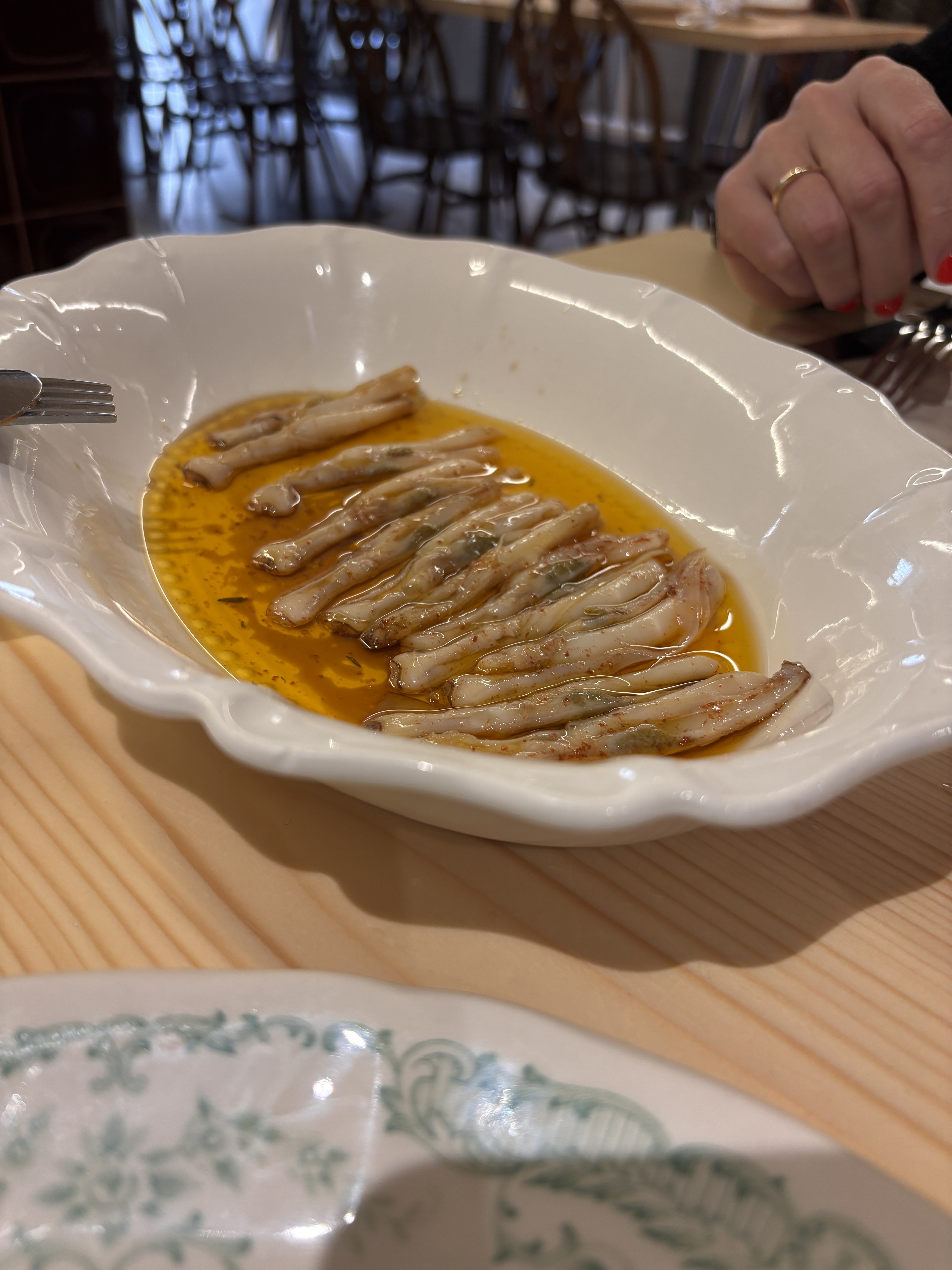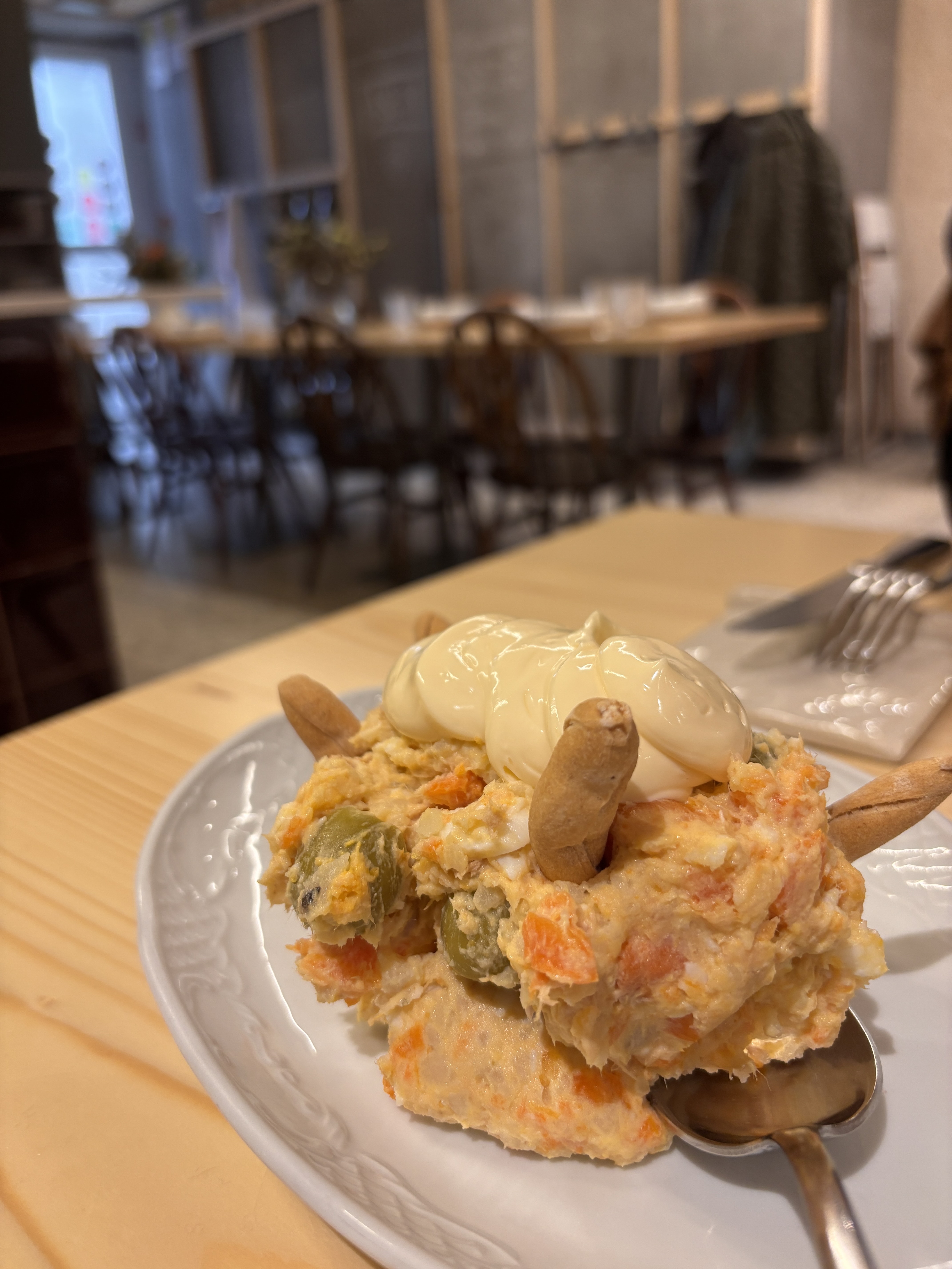 In the heart of the San Pedro neighbourhood, a discreet façade opens into an old-style eatery where Galician tradition is slowly simmered. The menu, handwritten on a blackboard, changes daily: escabeches, stews, potato salad, catch of the day, rice dishes and a homemade empanada that brings back childhood memories. The Santiago cake coulant rounds things off sweetly. Just twenty-five lucky diners per service. A communal table and exposed concrete frame a dining room with soul. An experience as original as it is flavourful.