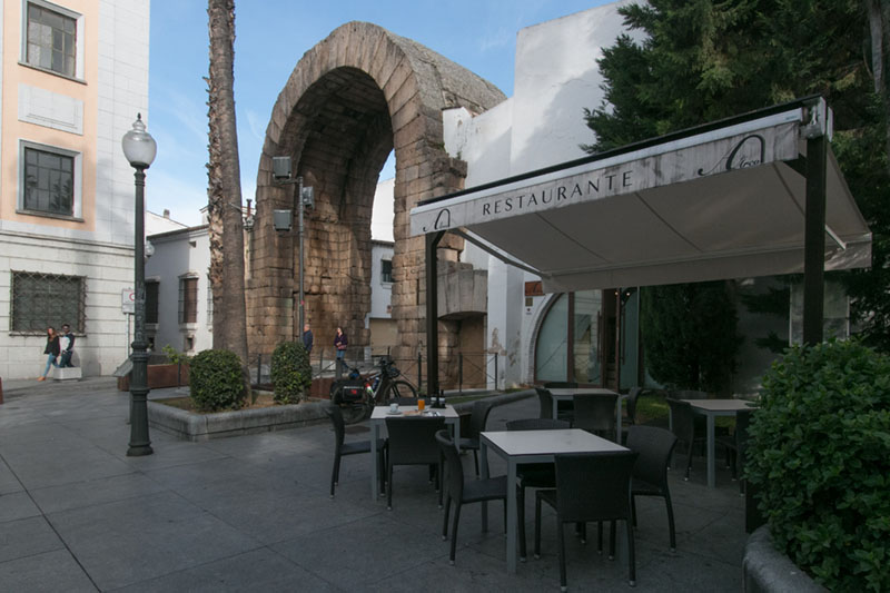 Located next to the Arch of Trajan, this restaurant allows diners to enjoy views of the monument from one of its dining rooms. The kitchen follows a classic Mediterranean line, with a well-curated selection of fish and meats, as well as emblematic dishes from Extremadura. It has a pleasant terrace and a tapas area. A flavourful and well-priced experience surrounded by walls steeped in history.