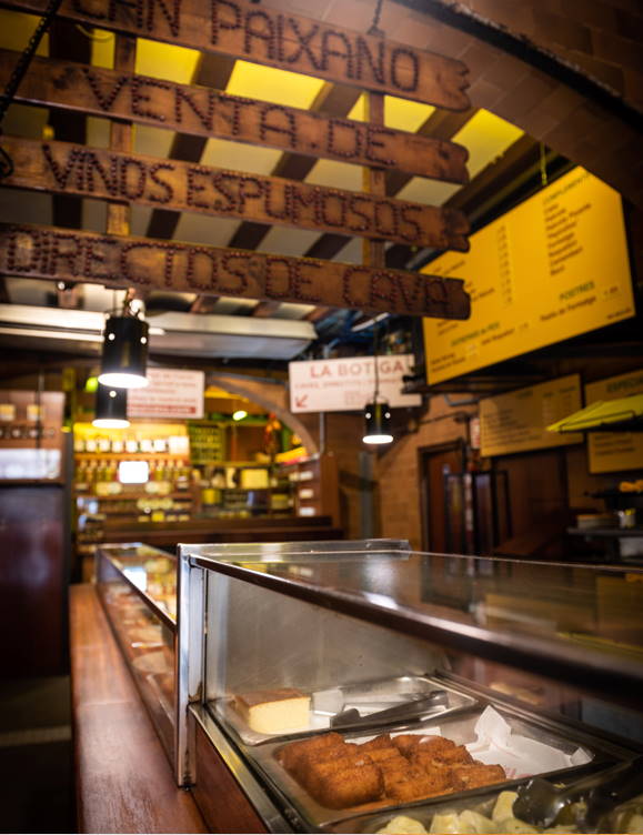 This Barceloneta classic, founded in 1969, retains the charm of old-style taverns. With a large bar and small standing tables, this is a place to enjoy on your feet. It is usually packed with both locals and tourists, and the bustle can sometimes make ordering a challenge. The cavas, sparkling wines, tapas and sandwiches are part of its DNA. It may not be the most comfortable spot, but the service is quick and prices are very reasonable. There is also a small deli where you can buy their products. An authentic experience that never goes out of style.