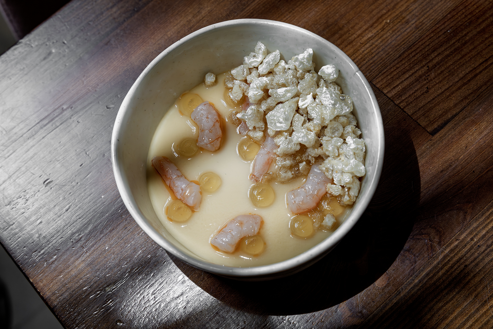 Just a bar for eight people and a handful of adjacent tables. Elaborate cuisine based on quality seasonal products. Menu designed for sharing, written on the wall along with the names of the main ingredients in each item. They offer a few dishes, some desserts and wisely chosen wines. A little place with a grand kitchen.