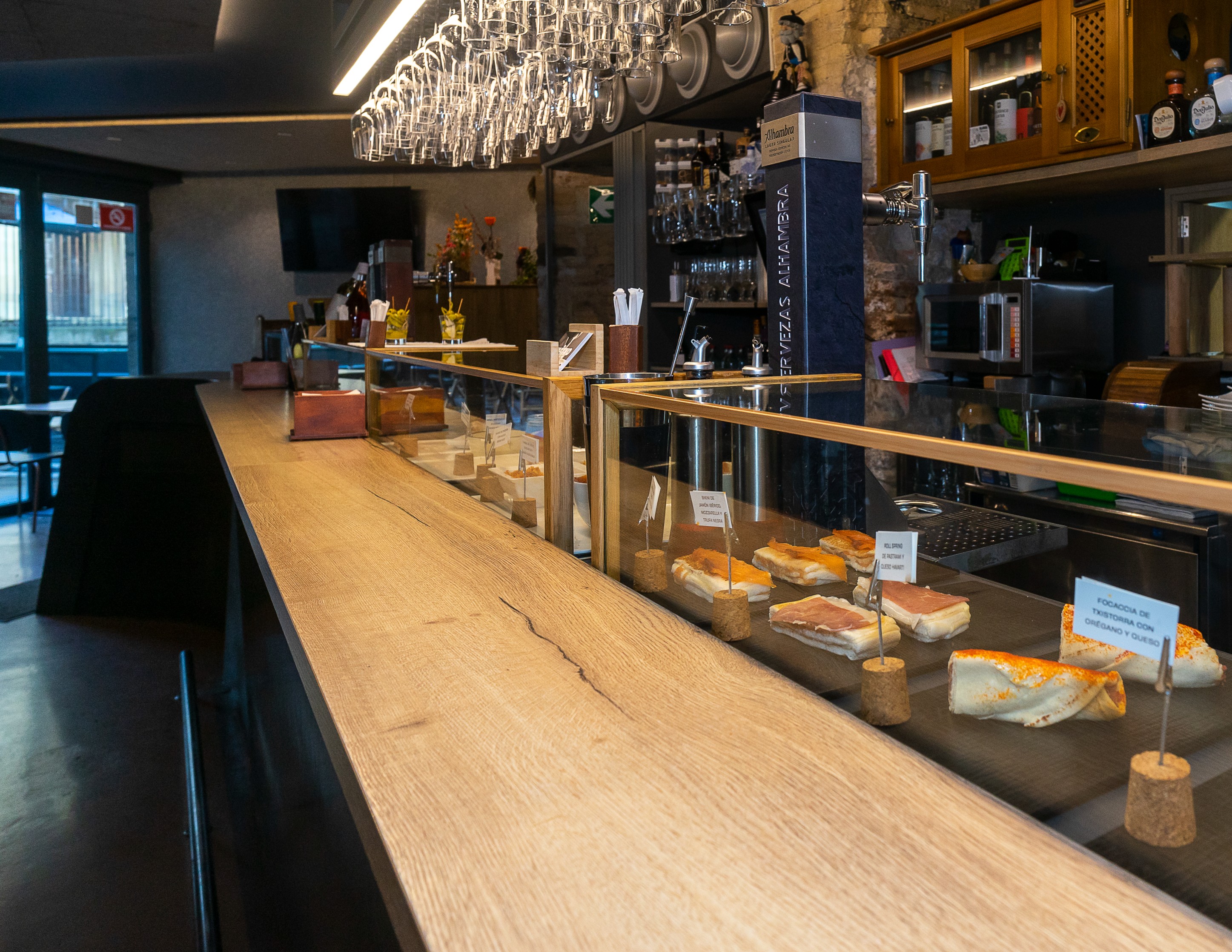 This bar offers cuisine with personality, prepared with quality ingredients and subtle international influences that modernise the menu without going overboard. The menu is extensive and appetising, with fried foods, tapas, small dishes, stews and homemade desserts. Among the favourites are the steak croquette, fried artichoke with Iberian pork jowl and truffle, and the foie gras and smoked cod small sandwich. The terrace facing the cathedral is a real luxury, and the service sees you from preprandial snacks to dinner, with uninterrupted kitchen service. A comfortable and very enjoyable place for any time of day.