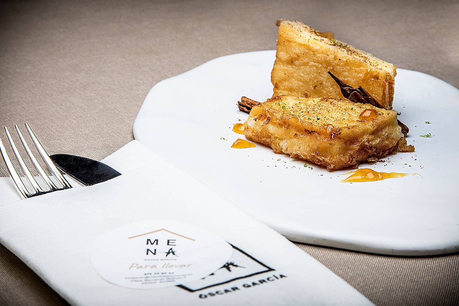 The more casual proposal from Óscar García (Baluarte) is located on the ground floor of the Ábaster Hotel, right in the old town. The space features a bar and several terraces. His cuisine offers traditional tapas made with market-fresh products and beautiful presentation. Highlights include the marinated quail, pig’s ear with porcini cream and suckling lamb cannelloni with sweet potato purée. A good selection of wines and craft beers completes the experience. Tasty, flavourful bites to enjoy in a relaxed, informal setting.