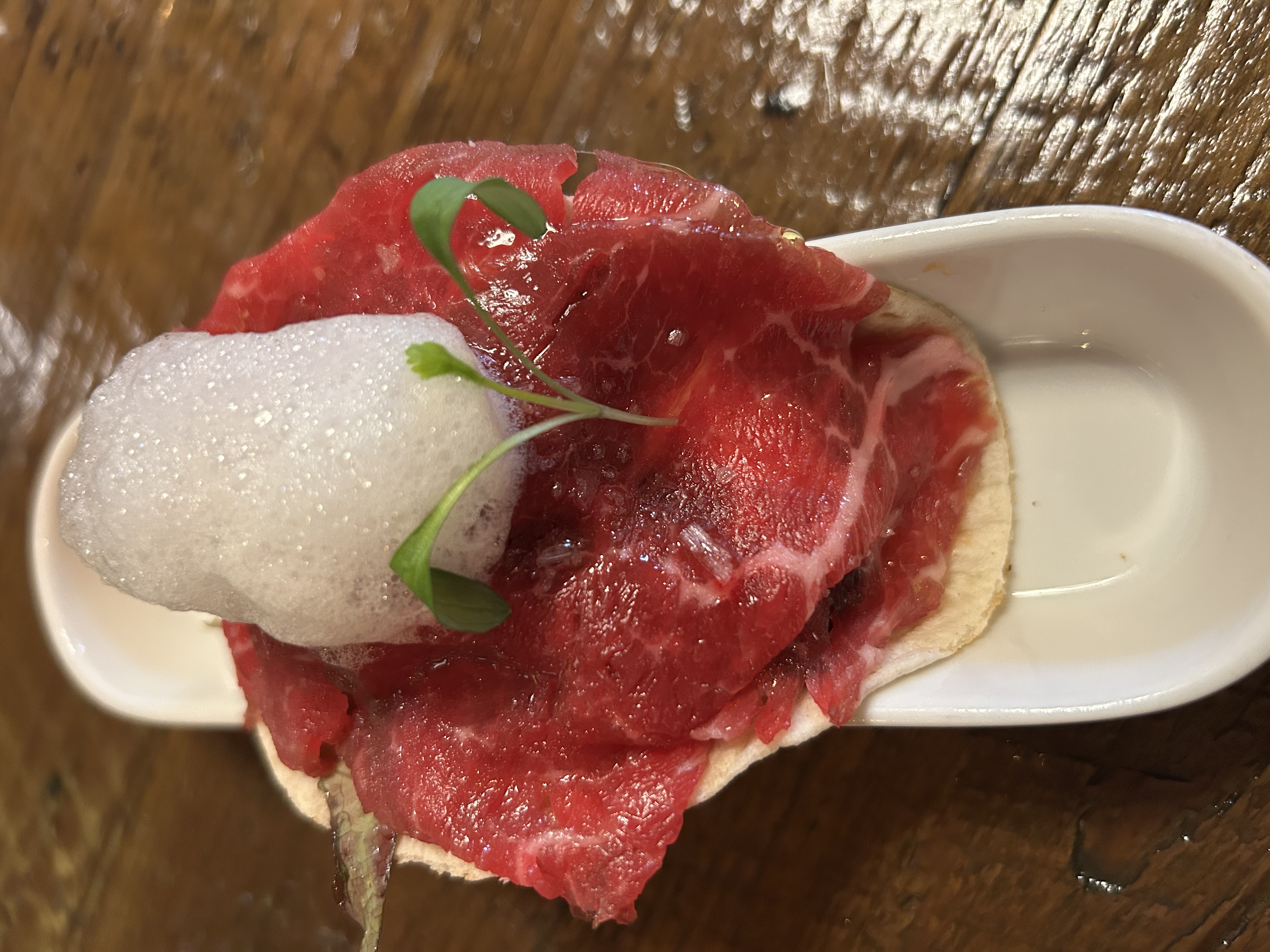 El meat bar de la ciudad. Su carta está dedicada exclusivamente a la carne, con salazones, tartares, cocciones largas y brasas. Se dice que tienen uno de los mejores steak tartare de Barcelona, además de auténticas maravillas como el Denito (una especie de Pepito), el solomillo o la picaña curada. Conviene saber que trabajan con normas estrictas de horarios y reserva, que solo se hace online, además de no aceptar mesas de más de cuatro comensales ni niños menores de ocho años. Una vez dentro, el fin justifica los medios. Un pequeño gran santuario para carnívoros.