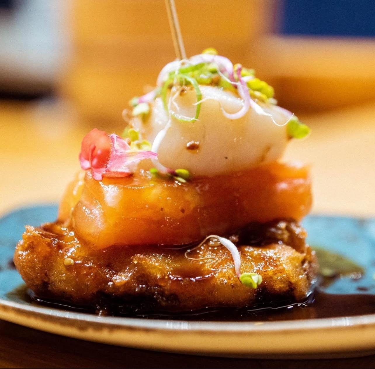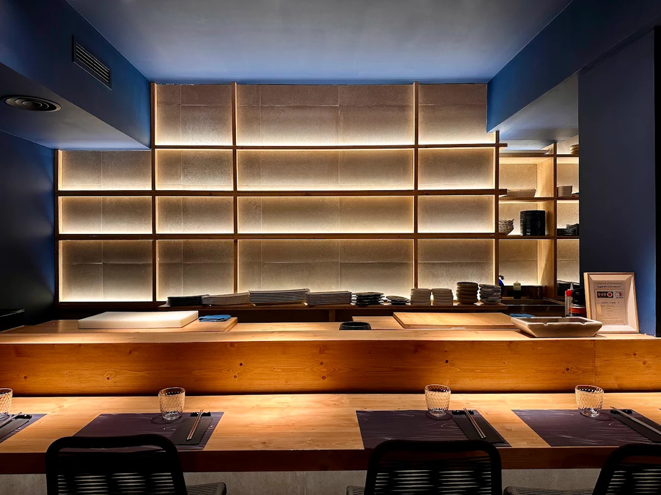 Tras su paso por Asagumo, el chef Ben inicia proyecto propio y firma una propuesta de cocina japonesa en estado puro. El producto de calidad, la técnica precisa y las presentaciones atractivas marcan una carta que recorre entrantes, maki, sashimi y nigiri, además de platos calientes como el yakisoba de pato o el donburi de ternera. El espacio es minimalista y elegante, con cocina abierta y dos ambientes bien diferenciados. Carta y menú de mediodía para el comedor principal y un menú omakase para ocho comensales en la sala inferior. Un japonés que no deja indiferente.