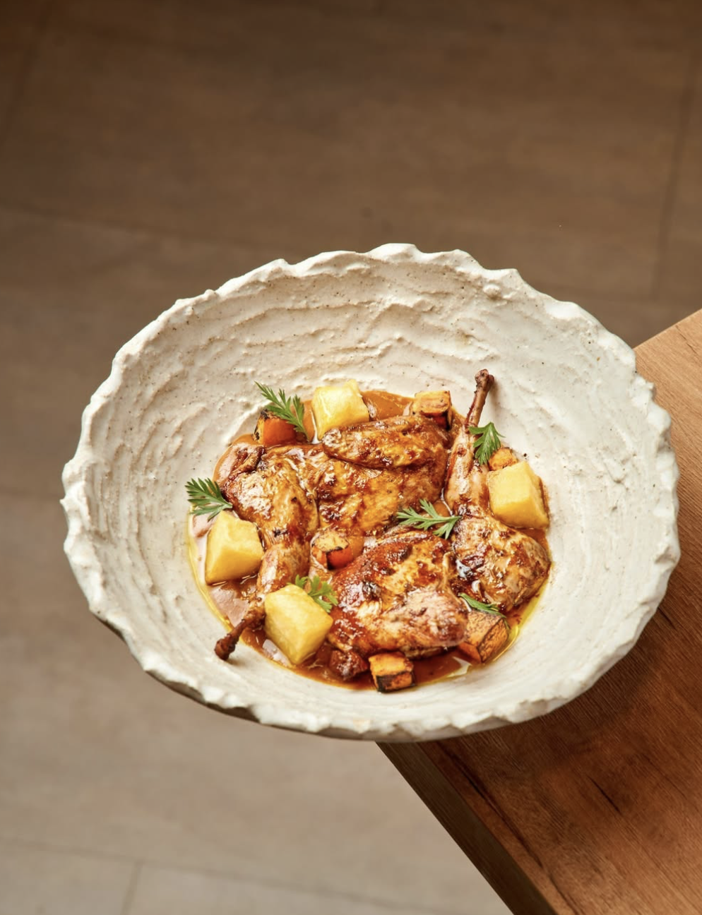 La taberna castiza de Juan Aceituno (Dama Juana), con Antonio Hereda al mando, defiende una cocina jiennense sin florituras pero con técnica y mucho oficio. Las croquetas de cocido, los mejillones con curry rojo, el brioche de steak tartare o el pani puri de patata, trufa y papada son auténticos hits. Conviene preguntar por los fuera de carta porque suelen ser memorables. La bodega, con precios razonables, invita a explorar. Aquí se puede tapear, tomar una copa o entregarse a una comida seria. Un espacio que confirma que la tradición, cuando se trabaja con inteligencia, puede ser profundamente moderna.
