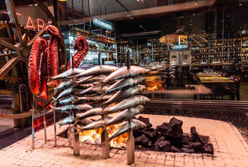 Escondido en un concesionario de coches en Vallecas, este es un lugar de culto para los amantes de los pescados a la brasa. El local exhibe a la entrada producto fresco del mar, con atunes y mariscos. Sorprende por su gran variedad de pescados de buena parte de la geografía española y su mimo a la hora de tratarlos. Divertida bodega con multitud de referencias. Amplio comedor con mesas altas y bajas que se llena a diario. Imprescindible reservar. Un lugar singular de visita obligada.