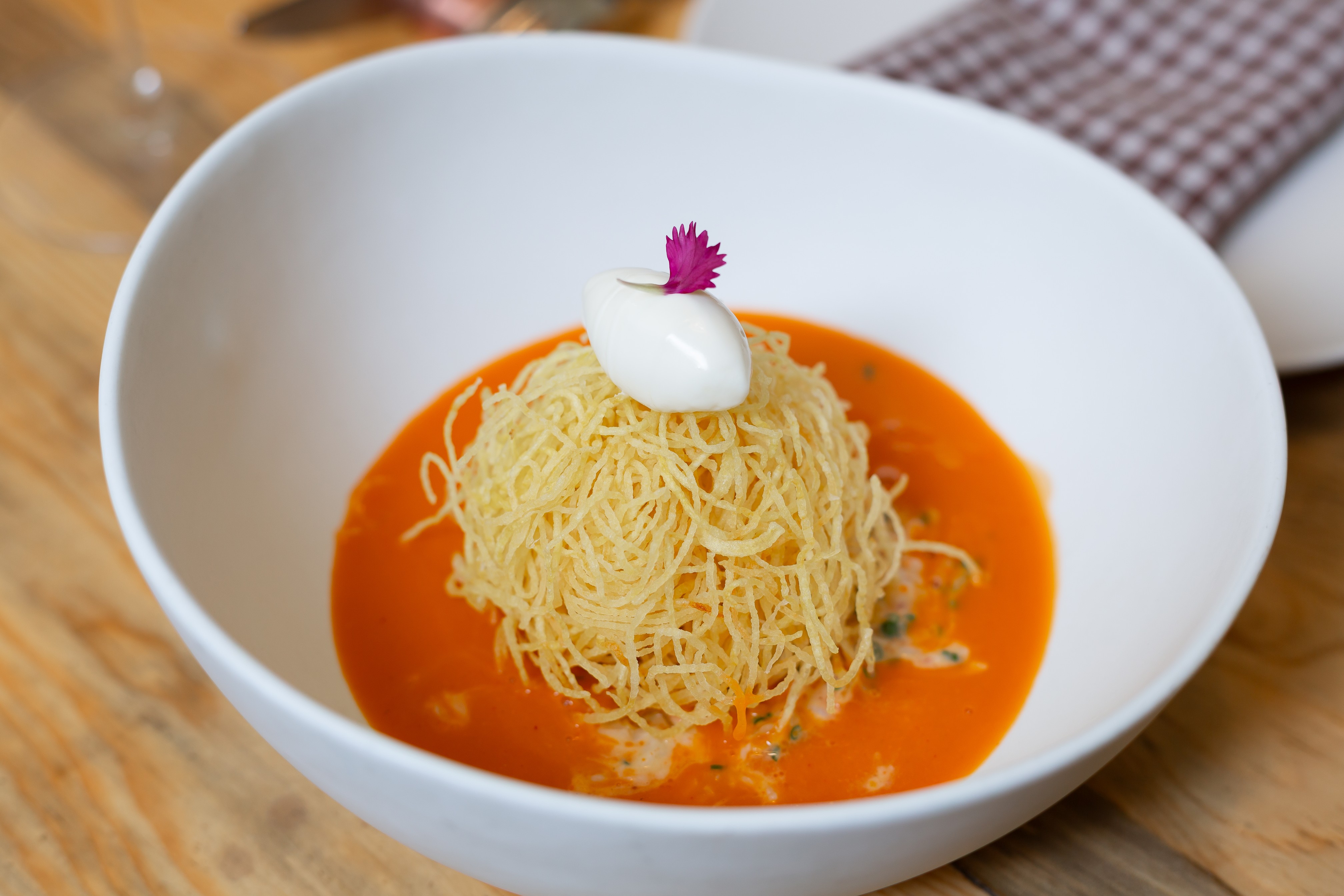 Este pequeño y acogedor local propone una cocina de base clásica, con toques de autor y mucha personalidad. Apuesta por los sabores profundos y definidos, usando fermentados, ahumados y encurtidos. La carta, breve y cambiante, mantiene algunos clásicos infalibles como el steak tartare con aliño de kimchi o los tortellini rellenos de cabrales y boniato. La experiencia se completa con una bodega llena de sorpresas y la posibilidad de descorche. Una joya escondida en el barrio de La Latina.
