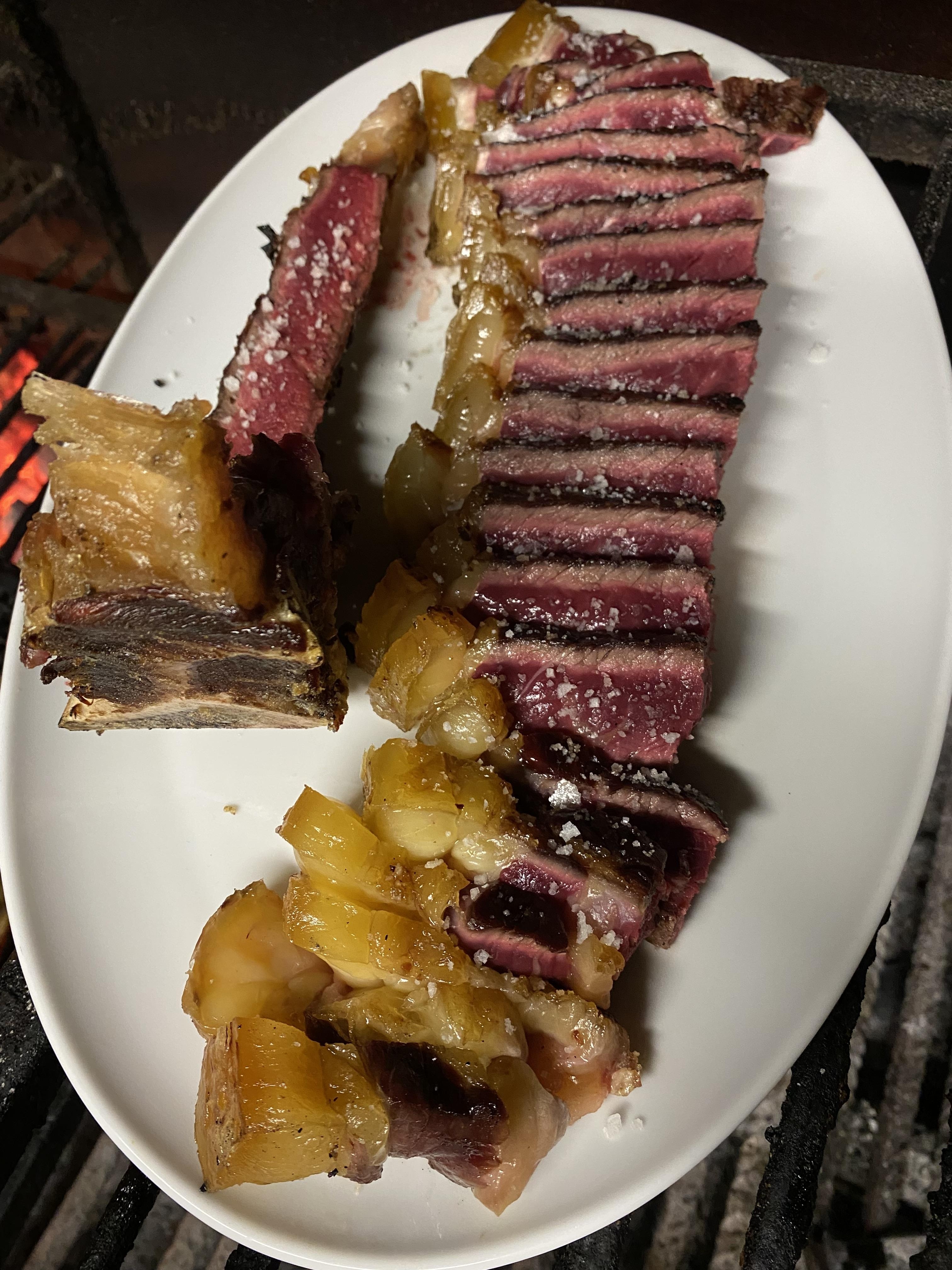Un lugar peculiar donde conviven animales y buen comer: de lunes a viernes es granja escuela y el fin de semana se transforma en templo de la brasa. Aquí todo pasa por el fuego, desde la borraja de la huerta hasta un buen chuletón o un besugo que arranca aplausos. La carta apuesta por lo sencillo y auténtico: carnes de su finca, pescados gallegos, verduras de temporada y postres caseros que saben a tradición. Una cocina que va a lo esencial: sabor, producto, brasas.
