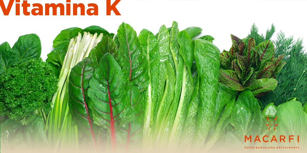 Verduras de hoja verde oscuro frescas, crujientes y deliciosas son excelentes en ensaladas o cocidas al vapor y además tienen una gran cantidad de vitamina K y calcio. Entre ellas la que más destaca es la col rizada, también conocida como col Kale. Le siguen las berzas, los berros, las espinacas, las acelgas y la lechuga.