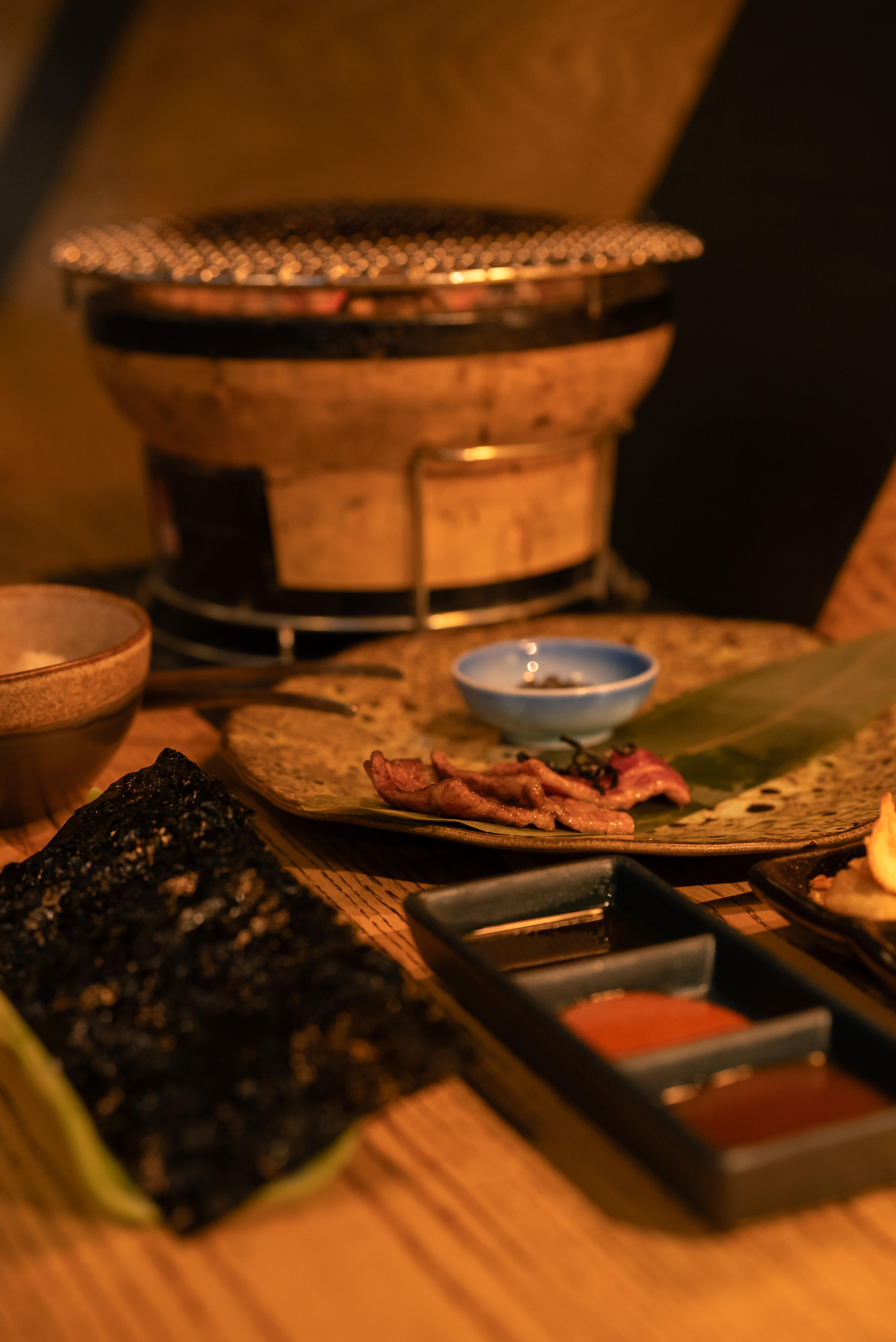 En pleno centro de Vigo, este local discreto por fuera sorprende con un interior minimalista en el que hay una larga barra de líneas limpias y madera clara. La propuesta gira en torno al yakiniku: una parrilla de carbón integrada en la mesa donde el comensal cocina cortes seleccionados de Wagyu o Kobe. Aunque hay carta, vale la pena decantarse por uno de los menús cerrados para poder probar más platos. Los postres parecen obras de arte y mantienen el nivel alto. Técnica, producto y presentación conviven en equilibrio, guiados siempre por una atención cercana y conocedora que realza cada paso del recorrido.